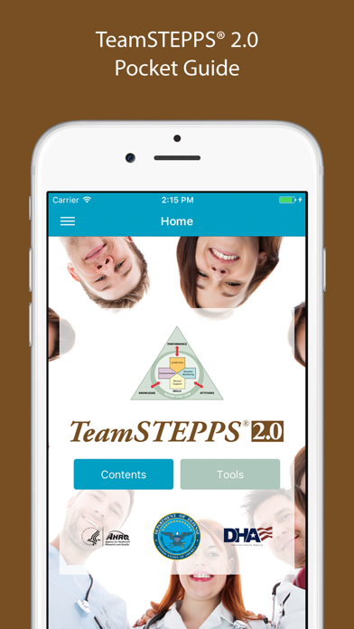 Overview The TeamSTEPPS® Pocket Guide is a quick-reference application designed and developed by the U.S. Department of Health and Human Services’ Agency for Healthcare Research and Quality, which is the Nation's lead Federal agency for research to improve the safety and quality of health care. Team Strategies & Tools to Enhance Performance and Patient Safety, known as TeamSTEPPS, is a teamwork system developed by AHRQ and the Department of Defense to improve collaboration and communication in health care settings. Patient safety experts agree that communication and other teamwork skills are essential to the delivery of high-quality health care and to the prevention of medical errors, patient injury, and harm. For more information about TeamSTEPPS, please visit us on the Web at https://www.ahrq.gov/teamstepps/index.html. Mobile Application: • Compatible version available for iPhone, iPod Touch, iPad, and all other major mobile platforms * • Full mobility without the need for wireless or Internet connectivity ** • Optional subscription for email notification of available updates * View the supported device list to check for compatibility with your specific device ** Application downloads and data updates require Internet connectivity