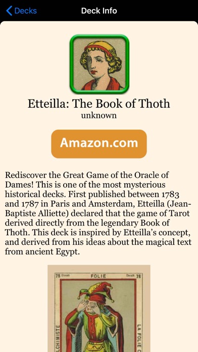 In celebration of its 30th anniversary as a Tarot publisher, Lo Scarabeo presents a catalogue of its decks available in print. Lo Scarabeo’s published offerings span six hundred years, from Tarot’s earliest beginnings in northern Italy up to today. With more than a hundred decks showing twelve cards per deck, here are more than one thousand five hundred Tarot cards for your viewing pleasure, each deck with a link available for purchase. Lo Scarabeo has dominated Tarot publishing in Europe for three decades. The company’s decks range widely, from the amusing to the whimsical, from the mystical to the beautiful, including decks both inspiring and enlightening. The breadth of artistic styles and the diversity of themes in Lo Scarabeo’s Tarot decks is impressive and fascinating. In addition to the catalogue functions, this interactive app provides one and three card readings from either the Universal Tarot or the Universal Marseilles Tarot, at the reader’s choice. Download the free Lo Scarabeo Catalogue App today, and take a leisurely look at the history of Tarot! *Intuitive, elegant interface is easy for beginners and experts *Gorgeous full screen, high-resolution card images for two interactive decks: Universal Tarot, and Universal Tarot of Marseille *Sample cards from over one hundred decks. *Full support for all current iOS devices *Includes two decks that allow interactive readings. *Two built-in spreads *Allow reversed cards or not *Animated shuffle & cut *Search for decks by title or under thematic categories *Interactive deck card meanings available in German, Italian, English, Spanish, and French. *Catalog available in English and Italian only. Enjoy your own private Tarot gallery, with the Lo Scarabeo’s interactive Tarot Catalogue app!