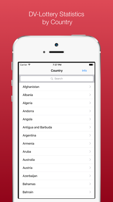 The application enables the users to view DV Lottery statistics in a convenient format. The statistical data provided in this application is collected from the official information resources given at http://travel.state.gov/content/visas/en/immigrate/diversity-visa/diversity-visa-program-statistics.html. Currently we have available statistics for the following years: 2012, 2013, 2014, and 2015.