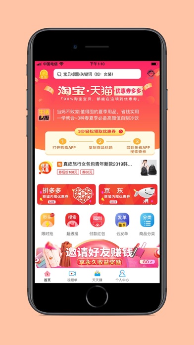 爱购物的你是不是总是在发愁钱省不下来? 不用再担心啦! 乐省app为您省下不该花的钱,还帮您呢! 在乐省app上有海量优惠商品,零门槛领券,让您用最低的价格购到最好的东西!商品种类齐全,想要什么搜什么,一搜即得。 分享乐省app上的商品还可以哦~ 快带着你的小伙伴来一起省钱吧! 乐省app优势 1、手机一键领取优惠券,轻松购物; 2、每天都会定时发放新的优惠券,没有都优惠; 3、手机键分享优惠券还可以轻松赚钱。
