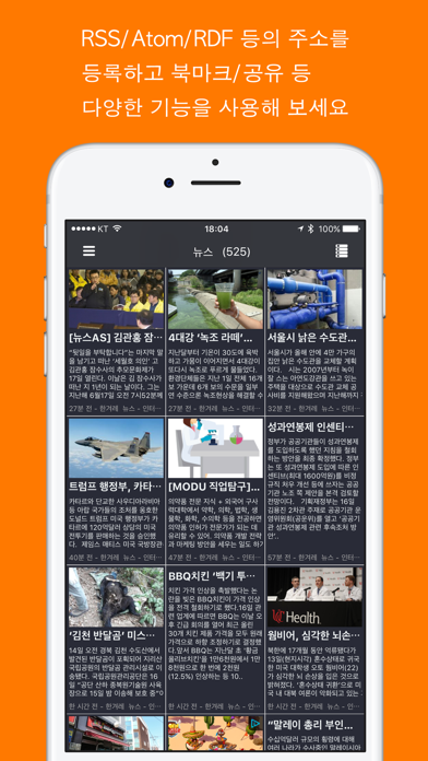 뉴스, 잡지, 블로그 등 다양한 정보의 RSS 를 빠르고 쾌적한 화면으로 구독하세요!!! 주요 기능 - RSS 1.0/2.0, Atom, RDF 형식의 주소 지원 - 사이트별 필터링 기능으로 빠른 로딩과 광고 없는 쾌적한 화면 유지 - 바쁜 아침 읽어주기 기능을 사용하면 기사를 음성으로 읽어주는 편리 함 - 외국 기사의 구글 번역 페이지를 원클릭으로 연결 - 쉽고 빠르게 기사를 공유하고 북마크 - 매번 앱을 실행하지 않아도 WiFi 에 연결되면 각각의 사이트 기사를 백그라운드로 업데이트 합니다. - 북마크 기능으로 관심있는 기사를 수집 할 수 있습니다. - 읽은 기사와 읽지 않는 기사를 구분해서 표시해 줍니다. - 다양한 테마를 사용 할 수 있습니다. - 가입 또는 로그인이 필요 없습니다.