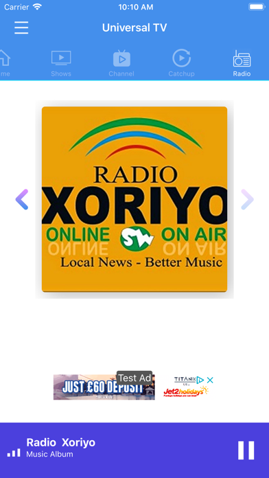 The first and largest Somali TV satellite network Universal Somali TV waa TV caalami ah lagana daawado aduunka oo idil, Universal Somali TV waxa ay kuu soo gudbineysaa wararka iyo barnaamijyo kala duwan. Using this app you will have following features: - Live streaming of TV. - Latest Programs and Category wise programs. - & days Catch-up Programme