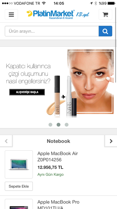 PlatinMarket e-ticaret paketleri ile hazırlanmış e-ticaret uygulamasıdır. Ürünlerinizi e-ticaret uygulamanızda sergileyebilir ve satışlarınızı gerçekleştirebilirsiniz. PlatinMarket ile işinizi internete taşıyın.