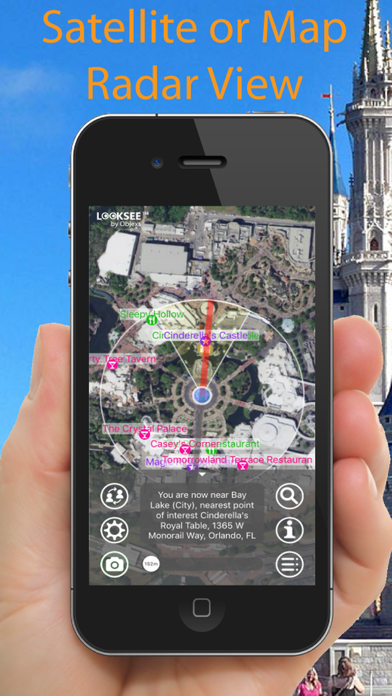 Looksee AR for Orlando and Central Florida, USA, is an Augmented Reality (AR) viewer used to find places of interest from close up to 10km away directly within your phone's camera view and add fun, knowledge and interest to your adventures and tours. Ideal for both tourists and locals wishing to explore and find out more about their surroundings and beyond: whether by foot, bicycle,car, taxi or Uber! It's simple to use - you just point and go! It includes a choice of Map or Satellite Image in view and a Search function to help locate things. Once downloaded no wi-fi or cellular network is necessary, so you can use when out and about in Orlando, even when there is no or poor signal coverage. This version, for Orlando and Central Florida, locates places north of Tampa and South of Gainesville. In fact the area covered encompasses a rectangle stretching from the Gulf of Mexico to the Atlantic at Hwy-1 from a north-westerly point at Cedar Key to south-easterly at Melbourne. This is an area of over 32,000 sq miles (83,000 km2). All towns and districts within the region are covered including: Cocoa, Daytona Beach, Deltona, Kissimmee, Melbourne, Ocala, Orlando, Palm Harbor, Sanford, St Cloud, Spring Hill and Titusville. In fact there are around 10,000 places of interest viewable within the App including Orlando Theme Parks, Cocoa Beach, Green Swamp Preserve and Chassahowitzka Wildlife Refuge. Categories that can be viewed and selected include Tourist Attractions, Hills, Lakes, Parks & Woodlands, Cities, Towns, Suburban Areas, Villages & Hamlets, Cafes, Restaurants, Cafes, Airports, Train & Major Bus Stations, Municipal Buildings, Places of Worship, Historic Sites and Museums & Arts. Some of the helpful Looksee features include: - Interactive objects (that you can touch for more information on them) - Magic EYE (to declutter the visuals and select only objects within) - Satellite or Map image in view (can select which or disable completely) - Search menu (with on-screen directional arrow and indicator graphics) - Filters menu (using which the categories of points of interest you wish to display can be easily filtered out or selected) - Distance slider (for an interactive depth of view filter up to 10km) - Zoom (using an on screen pinch to zoom gesture) - Snap-shot camera (for annotating your photos) - Video recorder for saving and sharing interesting places on social media (accessed by holding the camera icon for 1 second) - Radar view of everything around you on map (hold face down) So please enjoy adding interest to your Orlando, Florida, USA outdoor adventures! As seen at AWE USA 2019