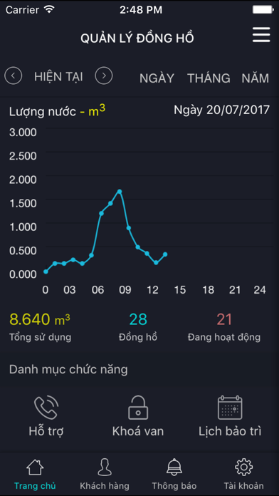- Quản lý thông tin đồng hồ nước. - Quản lý năng lượng thiết bị đồng hồ - Phân tích dữ liệu sử dụng nước sinh hoạt