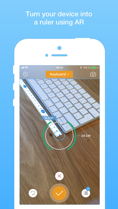 Have you ever been in a situation where you needed a quick size estimate, but you had no ruler with you? Powered by iOS 11 and ARKit, rulAR turns your device into an advanced measuring toolkit. Measure floors, walls, three-dimensional objects, room sizes, volumes and much more using rulAR's simple and straight-forward AR interface. Top Features - Ruler: Take precise distance measurements using the line ruler. A virtual ruler graphic shows you the current length just like a real ruler. - 2D/3D Objects: Create objects in any form and dimension, while the app shows you their length, area and volume sizes. - Save & Share: Save and share your measurements as blueprints, photos and 3D objects. - Design & Usability: rulAR's streamlined interface and simple user experience puts the power of AR at your fingertips. - Algorithm: Built on top of Apple's ARKit, rulAR combines first-class AR technology with an optimized world tracking algorithm. - Metric & Imperial: Switch to your preferred unit system, no matter where you are. rulAR Free & Premium: We are big fans of giving our users multiple choices, so you can pick the plan that fits you best. Use all of rulAR’s features in the ad-supported free plan or enjoy an ad-free experience with the premium plan. With rulAR’s free plan, you can use all of the app’s features in exchange for watching an advertisement videos for each measurement that you want to save. The premium plan offers an ad-free experience and can be purchased as a subscription for only $0.49 per 3 months. Lifetime premium is available as a one-time purchase of $2.99. Prices may vary slightly per country. Information about the subscription license: After the purchase confirmation, the fee for your rulAR Premium subscription is debited from your iTunes account. The subscription is automatically renewed after 3 months and payment will be charged to your iTunes account. The subscription automatically renews unless auto-renew is turned off at least 24-hours before the end of the current period. Your account will be charged for renewal within 24-hours prior to the end of the current period. The cost is the same as for the first period. You can turn off automatic renewal at any time by going to your account settings after purchase. Any unused portion of a free trial period will be forfeited when you purchase a subscription. The termination of the currently active subscription is not possible. Terms of use: http://busybytes.com/products/rular-terms-of-service Privacy Policy: http://rularapp.com/privacy-policy/ rulAR website: www.rularapp.com BusyBytes website: www.busybytes.com © 2017 BusyBytes GmbH - All rights reserved