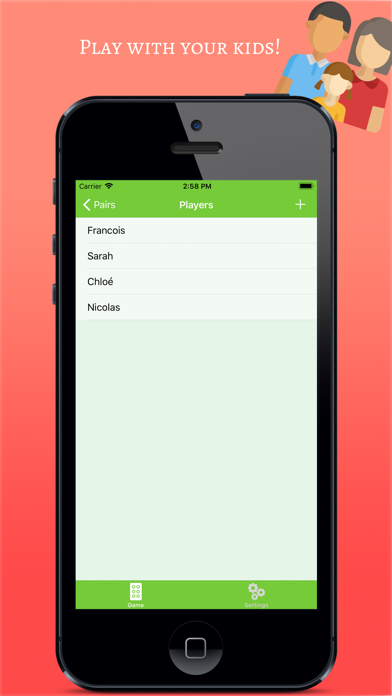 Play the famous pairs game with your own cards alone or with your friends ** Boost your brain while having fun! ** This game is easy: pick a level (2x3, 4x4, 6x6, you can even design your own level!), choose an opponent (or practice alone) and start the game! HIGHLIGHTS • Create new cards by importing pictures from your photos library • Play with friends, kids, family members... multiplayer supported! • Define the number of pairs you want to play with (e.g. 10x10)