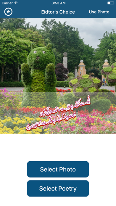 Write Urdu Poetry and Quotes on your Pictures Urdu Poetry and Text on Photos app brings you the most awaited and desired text editor on your phone. With the help of this app now you can edit text on your photos and make them as desirable as possible. This text on photo apps editors allows you to write urdu poetry and urdu text on your photos. The Urdu Poetry and Text on Photos app comes with an abundance of features, all targeted towards making your photos beautiful as well as expressive at the same time. Some prominent features of this text editor on photos apps are as follows: Text Editor – The simplest feature of Urdu Poetry and Text on Photos app is the text editor. With the help of this feature you can select from a variety of text fonts and place them on various backgrounds. Photo Text Editor – The second feature of Urdu Poetry and Text on Photos app is the photo text editor. With the help of this feature you can easily adjust your selected text font and size and place it on your photos. You can place the text on your photos on any place in the photos. Editor’s Choice – The third major feature of Urdu Poetry and Text on Photos app is the editors choice feature. In this feature, the app offers you a variety of urdu poetry and quotes that you can use on your apps. Now you don’t need to type urdu poetry, you can select from hundreds of text options. Social Sharing – All the text that you write on your photos can be shared on different social media platforms with the help of Urdu Poetry and Text on Photos app. Download the Urdu Poetry and Text on Photos now and create your unique photos with urdu poetry on them and share it with your friends.