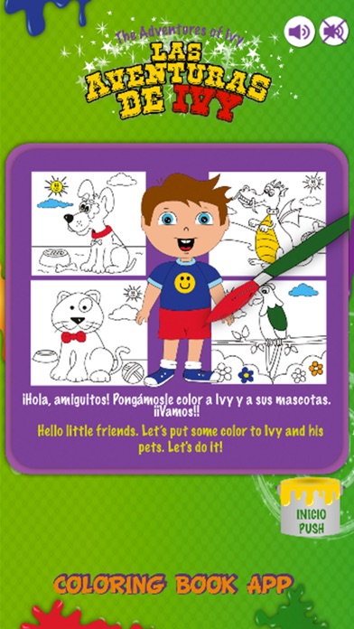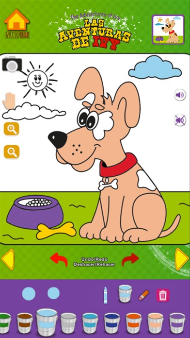 DEAR FRIENDS! Meet Ivy, the time adventurer, and his pets. Have fun giving them color. This coloring application will help you develop creativity in early or formative ages and free expression through art. Press the start button and start coloring. Touch the screen and choose the paintbrush, color or paint bucket and have fun. Enlarge the images to give color to those small details. Take a photo and keep track of your work, and while having fun, you can listen to background music or hide the audio.