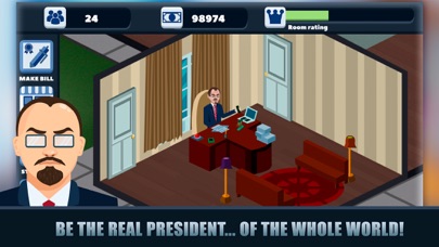 Rule the world playing our new fantastic World President Simulator game! Be ready to make important decisions about different life aspects, collect as many electorate’s votes as it even possible and prove them all that you are worth of becoming the best world president ever! Check your governing skills and just enjoy the game! There are so many important things to do when you’re on duty as a real president – you won’t believe! Being a president is not just sitting in your expensive armchair and doing nothing special – it’s a real mission! So learn more about such departments as education, army, culture, sports, science, taxation and others and manage them all! Earn points for successfully made budget distribution and unlock new interesting things to manage like health service, power engineering, ecology or law machinery and gain the reputation of the best world president ever! Buy some new outfit and interesting expensive objects for your working space playing World President Simulator game and have fun! Check your countries’ governing skills being on your presidential duty! Power all the necessary skills (development speed, budget distribution, public relations, relevance and diplomacy) to become the greatest president ever and have fun! World President Simulator features: • Feel like a real world president • Don’t lose your chance to power your skills up • Learn interesting things about governing • Enjoy colorful working space around you Check this ultimate World President Simulator game and you absolutely won’t be disappointed!