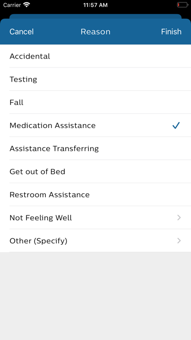 The Philips CarePoint Notifier app is an easy-to-use mobile product for caregivers in senior living communities to manage and respond to alert calls from their residents. When a resident in a senior living community that uses the Philips CarePoint resident safety system calls for help, the Philips CarePoint Notifier app promptly broadcasts the alert to all assigned caregivers’ mobile iOS devices, including details on the resident, alert type, and location. A caregiver chooses to take ownership of the alert and all other caregivers are notified of this action. After the incident has been addressed, the caregiver uses the app to select a reason for the call, enter notes about the incident and close the alert. All other caregivers are notified of the completion. At any time a caregiver can use the app to text or voice call other caregivers, and the app’s notification area always shows current activity so that a caregiver or manager can easily view the status of all outstanding and in-process alerts. Unhandled alerts are repeated on the mobile device and may be escalated to additional caregivers outside the designated group. Secure messaging maintains privacy and meets HIPAA requirements. The app can send text messages easily both to individual caregivers and to groups from an address book. Voice calls can be made to other CarePoint Notifier devices, handsets within your community, or 911 services.