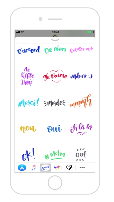 Express yourself with new, bright and colorful stickers for iMessage. With more than 42 new stickers in french. There will also be free update in future. Enjoy and check my other apps too by searching "Octalita” in the App store :) Created and designed by Octalita www.octalita.com instagram: @octalita Stickers included: A bientôt - see you soon A demain - see you tomorrow Amour - Love À plus tard - See you later Bien, Merci! Fine, thanks! Bonjour - Hello (Good morning/good afternoon) Bonne journée - Have a nice day Bon voyage - Have a nice trip Ça va? - How are you C’est ouf! - That’s crazy C’est top! - That’s awesome C’est la vie - That’s life C‘est l‘heure de l‘apéro! - Time for a drink C‘est parti! - Let’s go C‘est pas vrai! - No way! C‘est trop cool! - It‘s so cool Coucou - Hello Désole - Sorry De rien - You‘re welcome Excusez moi - Excuse me Je kiffe trop- I like it Je t‘aime - I love you Mdrrr - LOL Merci - Thanks #oklm - keep calm ouf - sigh Pardon - Sorry Parfait - Perfect Sans déc? - Really? Tout doux - Let’s take it slow Tranquille - Take it easy Très bien - Very good Voilà - Tadaa … and many more stickers + additionally 3 emoji smiley :-)