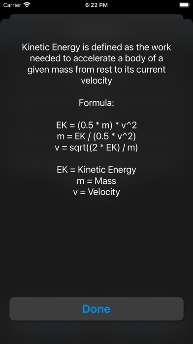 Physics Calculator is an easy to use App that includes 120 Physics Calculators: - Force - Work - Total Work Done - Power to Work - Power With Displacement - Power With Velocity - Kinetic Energy - Potential Energy - Centripetal Acceleration - Concave Mirror Magnification - Centripetal Force - Circular Velocity - Velocity - Average Velocity - Displacement - Kinetic Friction - Static Friction - Newton’s Law of Gravity - Planetary Motion - Gravitational Acceleration - Escape Velocity - Hooke Law - Elastic Potential Energy - Newtons Second Law of Motion - Impulse With Velocity - Impulse With Time - Momentum With Velocity - Momentum With Time - Moment - Simple Pendulum - Physical Pendulum - Torque - Density - Einstein Mass Energy - Stress - Strain - Youngs Modulus - Projectile Motion for Vertical Velocity - Projectile Motion for Vertical Displacement - Projectile Motion for Horizontal Displacement - Projectile Motion for Range - Doppler Effect Wavelength Front - Doppler Effect Wavelength Behind - Doppler Effect Approaching Source - Doppler Effect Receding Source - Doppler Effect Approaching Receiver - Doppler Effect Receding Receiver - Differential Pressure Measurement - Sound Pressure Level - Sound Intensity Level - Sound Power Emitted - Sound Wavelength - Free Fall - Noise Pollution Level - Battery Storage Rating - True Porosity - Souders Brown Equation - Concave Mirror Equation - Constant Q Transform - Horsepower - Moment of Inertia - Transverse Strength of a Material - Torsional Pendulum - Apparent Porosity - Kinematic Viscosity - Speed of Sound - Lensmaker's Equation - Podmore Factor - Critical Frequency - Brinell Hardness Number - Voltage Divider Rule - Electrodialysis - Amount of Substance - Angular Acceleration - Newton's Law of Cooling - Potentiometer - Drift Velocity - Helical Spring Index - Gravitational Potential Energy - Sound Decibel Distance - One Dimensional Motion Velocity - Acceleration Due to Gravity on Outside Earth - Boltzmann Gas Constant - De Broglie Wavelength - Average Translational Kinetic Energy - Nature of Light - Tidal Force - Average Acceleration - Kinematic Displacement By Velocity and Time - Kinematic Distance - Kinematic Final Velocity - Kinematic Velocity - Focal Length of Optical Convex - Magnitude of Vector - Moment of Inertia of a Point Mass for Rod - Work for Linear Motion - Sound Wave Velocity - Ceramic Transverse Strength - Tension of Wire Rope Holding a Load - Normal Force of an Object at Rest - Normal Force of an Object on an Inclined Plane - Normal Force of an Object with External Downward Force - Normal Force and Kinetic Friction - Refractive Index Formula - Solid Shaft Maximum Torque - Solid Shaft Diameter - Shear Stress in Shaft - Lowest Spring Resonant Frequency - Hollow Shaft Maximum Torque - Work Done by Frictional Force - Stokes Law - Newton's Third Law of Motion - Axial Stress of Cylinder Wall or Tube - Circle Center of Gravity - Inverse Square Law - Coefficient of Friction - Torsional Deflection of a Shaft - Drag Force on Disk - Vickers Hardness - Muzzle Velocity It Also Includes: - Formula for Each Calculator - Description for Each Calculator - Copy Button - Clear Button