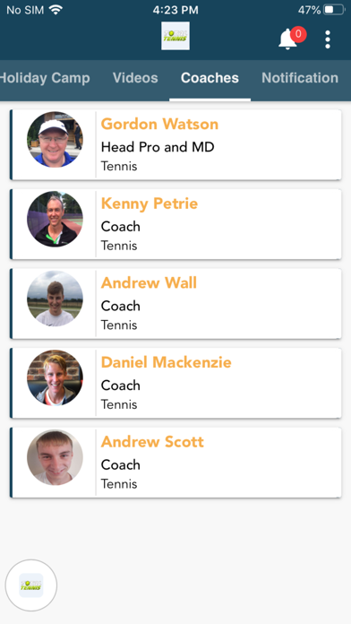 To facilitate booking on to our coaching programmes for 4 year olds to Adults of all levels - Schools, Club and Holiday programmes Tennis Coaching for the whole family FEATURES: - Notification - No more SMS and Emails - Attendance - Information & Stats - Payment - Discounts - Upcoming Events - Coaches Availability Clubs: Inchyra Tennis Club, Linlithgow Tennis Club and Westwoods Health Club Coaches: All LTA Accredited and DBS checked TENNIS PARTIES TOTAL Tennis ACADEMY TENNIS ASSEMBLES & WORKSHOPS LTA TOURNAMENTS & FUN EVENTS (Adults & Juniors) Never miss what is happening within our programme and easily keep in touch with your child's coach. This is a must download for anyone involved on the Total Tennis Coaching programme
