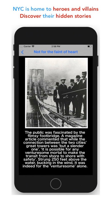 An immersive exploration of one of NYC’s hippest neighborhoods, PlaceChase BrooklynBound is definitely not your parents’ tour guide. Go beyond the sights that everyone sees and get out of the group tour crowd. Uncover the city’s secrets and laugh at stories you never imagined possible. We’ll give you the who, what, where and when of both the city’s best-known sights and the unfamiliar places in between. We’ll also explore the untold story of how, why and so what? Experience the real New York at your own pace and discover for yourself that truth is often stranger than fiction. This Chase includes 12 Places to choose from. If you want to see them all, plan on a full day of sightseeing fun. PlaceChase BrooklynBound takes you across the Great East River Bridge, as it was known, into the heart of the picturesque historic waterfront neighborhoods of Brooklyn Heights and Dumbo. Explore the life and times of a colorful cast of characters that range from the curmudgeonly farmer Teunis Joralemon, who fought City Hall tooth and nail only to see his daughters marry future Brooklyn mayors, to Victoria Woodhull, the first woman to run for the U.S. Presidency, who was forced to manage her campaign from inside of a jail cell, to Robert Odlum, swimming instructor and fire safety enthusiast, who proved you would not suffocate in jumping from great height but that the landing could be fatal. We chart the rise of that quintessential American phenomenon, the pop-up city that grows seemingly overnight at the whim of hucksters, real estate speculators and transportation tycoons. This tour through America’s First Suburb and the City of Churches leads you from Brooklyn’s earliest days, through the glories of the late 1800’s, the dark days of the 1960s and 70s, to the city of today with its unusual combination of historic preservation and hipster cred. PlaceChase is a great way to explore the City on your own or with friends and family. Kids will truly enjoy the Chase and its competitive take on sightseeing. PlaceChase will entertain, whether you are on vacation, a day out in the city, a first date or are celebrating an anniversary, as a tourist or as a native New Yorker. As you explore Brooklyn, we offer 12 opportunities for a deep-dive, clearly identified on our map. Experience them in their entirety, or dip into them as whim dictates. We suggest a route that incorporates all 12 Places, but you may enjoy as many of them was you want, in any order you choose, in one session or over time. Along the way you will be asked trivia questions related to each Place, that you may answer to score points if competition is your thing, or simply skip if you are just interested in exploring the oft overlooked nooks and crannies of Brooklyn. Once downloaded, no GPS or other connectivity is required. Once purchased, the Chase is yours. You can play it as often as you like and share the experience whenever you choose. You may enjoy your Chase in a single session or over time, whichever works best for you. There are no in-app purchases, no data sharing and no advertising. PlaceChase BrooklynBound is just one of a family of NYC audio tour apps. Try them all. Happy Hunting!