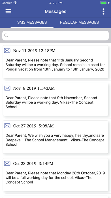Vikas parent portal app provides communication for parents using which they can download school announcements, Class assignments, Events.