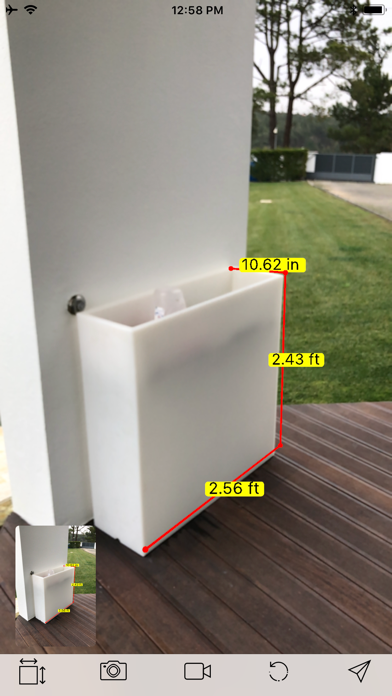 Lazy Tape lets you take measurements by using your camera. A quick area calculator is provided to help estimate dimensions (length x width only). Best results are obtained if you move around and close to the object you need to measure. Features that require in-app purchase: - Sharing a screenshot - Saving a picture to your Photos library - Record and share video - Removal of Ads It is not meant to replace a proper measurement tool if your needs require precision, and can be thought as an estimate tool, rather than a true measuring tape!
