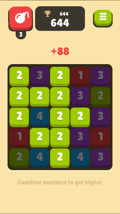 Combine Me is simple puzzle brain game All you have to do that is just combine number to get higher number Features: - Beautiful design for mobile. - Cool sound effect and animations. - Endless game. - Easy game play but not for high score. - Leaderboard with friends and family. How to play: - Tap one number that stay side by side with the same. - Tap again on number that you want to combine. - Use bomb to remove 1 number on board. - View video ad to get more bomb. - After 15, you will get special block with 200 point per block you removed. If you have issue ans bugs, please report to us. We will fix it as soon as we can. Thank you so much and enjoy Combine Me!