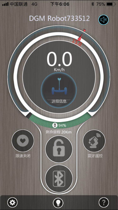DGM Robot是一款平衡车配套的手机APP,平衡车与手机通过蓝牙实现智能无线连接。APP中,可以实时查看车辆的各项参数的详细信息,也可以设置某些参数,还支持蓝牙遥控。此APP兼容了大型平衡车和小型平衡车以及滑板车。 DGM Robot is a balanced car supporting mobile APP, balance car and mobile smart wireless connection via Bluetooth. APP, you can view in real time the details of the parameters of the vehicle, you can also set some parameters, also supports Bluetooth remote control. This app is compatible with large balance and small balance cars and scooters. Robot DGM to wyważony samochód obsługujący mobilną aplikację APP, samochód z wagą i mobilne inteligentne połączenie bezprzewodowe za pośrednictwem Bluetooth. APP, można przeglądać w czasie rzeczywistym szczegóły parametrów pojazdu, można również ustawić niektóre parametry, a także obsługuje pilot zdalnego sterowania Bluetooth. Ta aplikacja jest kompatybilna z dużymi samochodami bilansującymi i małymi samochodami i skuterami.