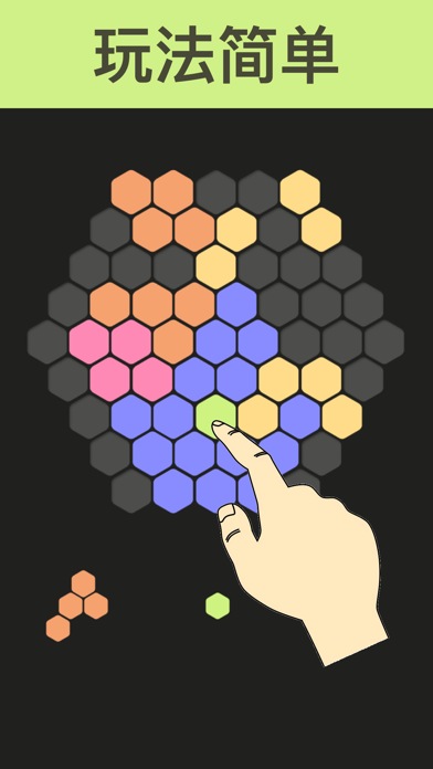 这是一款非常值得一试的游戏佳作!闲暇时光玩上几局,乐趣不断。同时也极具挑战力,想要获得更高的分数,在你操作时要仔细自考下。开动你的脑力来挑战一下吧! 【 怎么玩?】 游戏玩法简单,游戏开始后,用手指拖动底部的六角色块到上面的大的蜂窝六边形的空格内,即可填充色块,填满一行即可消除得分。当无处摆放六角色块时,游戏结束! 游戏免费提供给所有玩家!!!现在你就可以免费下载畅玩啦!!!