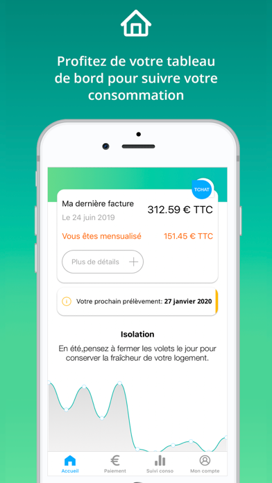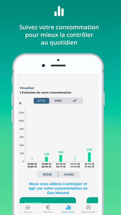 Avec l’application Gaz Tarif Réglementé, une marque du groupe ENGIE, vous gérez facilement votre contrat de gaz naturel au tarif réglementé. Vous pouvez : - saisir votre relevé de compteur gaz naturel, - suivre votre consommation de gaz naturel, - garder un œil sur vos dernières factures et vos derniers paiements et régler vos factures par carte bancaire ou par e-TIP - télécharger votre justificatif de domicile ainsi que votre contrat, - contacter notre Service Client par e-mail ou par téléphone depuis l’application, et encore d’autres fonctionnalités à découvrir This mobile application is dedicated to ENGIE’S household and users who have concluded a natural gas contract with regulated tariff.