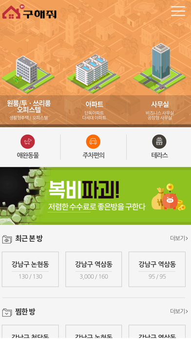 생활형주택/오피스텔, 원룸,투.쓰리룸, 오피스텔, 아파트, 사무실, 복비파괴! 저렴한 수수료로 좋은 방을 구해드립니다.