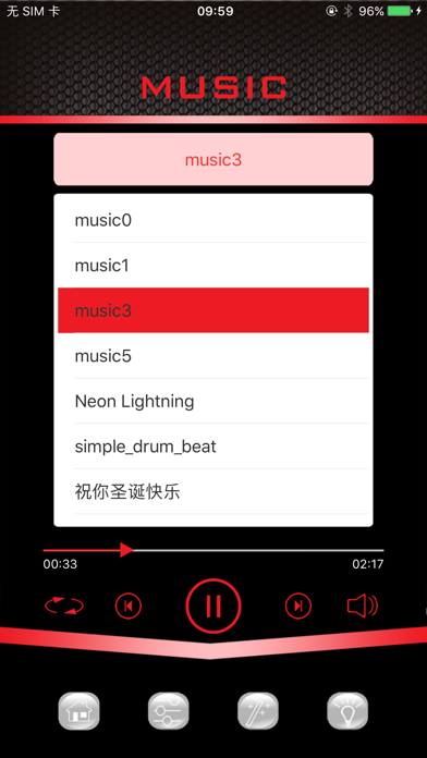 The application can use BLE remote control BLE dual-mode products, the use of iOS devices as a remote control, control the product features. 1, Lantern: The corresponding LED lights color, brightness and color temperature control,LED lights can be selected in accordance with the corresponding mode changes 2, Music: You can use Bluetooth peripherals to play the user's local music, SD card music and UDisk music 3, FM:Find and change radio station 4,EQ: You can choose the corresponding mode according to the built-in EQ effect, but also according to preferences custom EQ