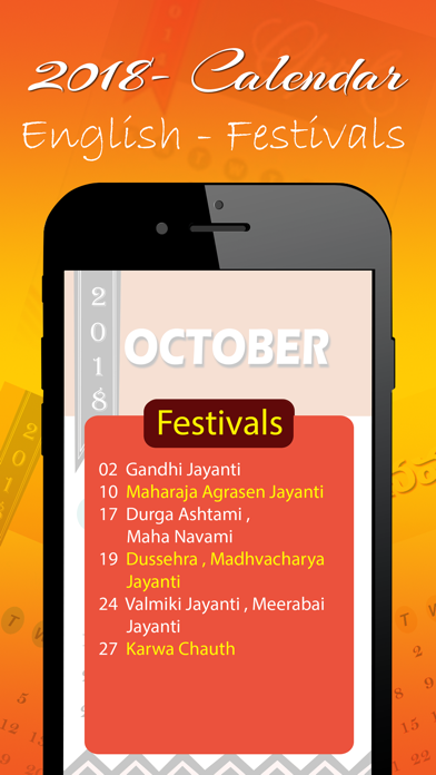 New Calendar 2018 Year. * "Fast, Simple & Clear!", calendar app. * Usable without spending money. * Supports year 2018 Telugu, Hindi & English calendar. * Provides an option to navigate through the months in 2018. * Displays the list of festivals in Telugu, Hindi & English for the currently selected month. Supports all screen types. * This app intends to bring you information on Telugu Calendar, Telugu Holidays & Telugu Festivals, Hindi Calendar, Hindi Holidays & Hindi Festivals, English Calendar, English Holidays & English Festivals, etc. * The app is designed primarily for Telugu, English & Hindi speaking people. * Three languages calendar in one place.