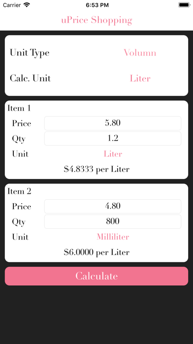 12:40 PM Headache when doing shopping unit price comparing? This app helps you in being a smart consumer in comparing unit price and picking the best market offer/deal. - simple to use - designed interface - smart unit conversion to accommodate different unit price comparison - unit type categorization for easy filtering - various measurement unit to choose
