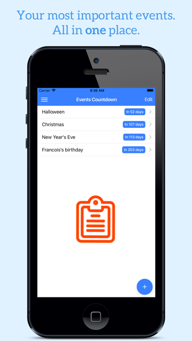 ** How many days until my birthday? ** My daughters asked me this kind of question so often that I created this simple app! Christmas, Halloween, birthdays, holidays... all your events at your fingertips. HIGHLIGHTS: • Create countdowns to any future event • Add your own photos • Add reminders to never forget an event again