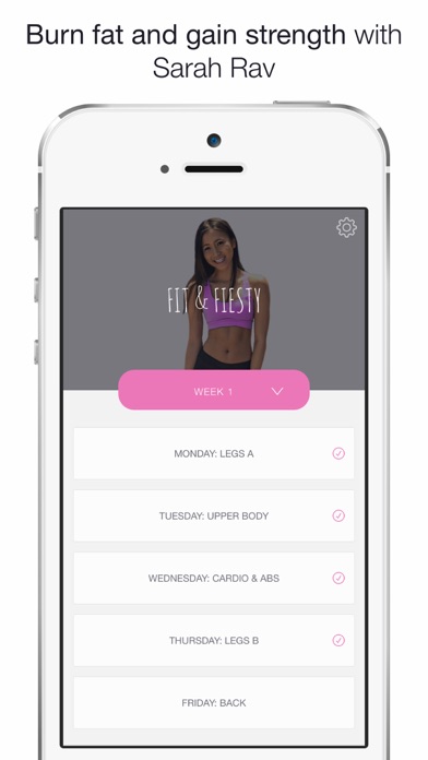 Want to train like Sarah Rav? She has made it easy for you! Do the exact same workouts in an easy to follow 12 week program. Features: - VIDEO instructions for every single exercise. - INTENSE circuit workouts. - AUDIO and rest time between exercises, rounds and circuits. - FOREVER - access forever for a one time fee of $59.99. - TRACK your program progress automatically on your phone. Week 1 Monday is free to do as a sample. If you like the program, you can unlock it all for a one time fee of $59.99. Pricing is in USD, it may appear as more or less depending on your currency exchange. The workouts require gym equipment. Your program progress will save locally on your phone. If you want to save it dynamically to your user account, you have to sign up with email. Please note, you must have an active internet connection to use this app. Privacy Policy can be found at: https://www.dropbox.com/s/fzegeghrr69kby5/Privacy%20Policy.pdf?dl=0 Terms of Use can be found at: https://www.dropbox.com/s/n831ltguutz4qc6/Terms%20of%20Use.pdf?dl=0