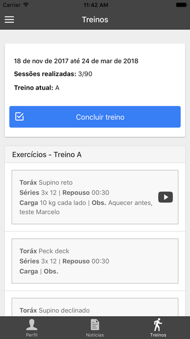Aplicativo para clientes da E-Fit Esporte e Saúde. Consulta de treinos, pagamentos, avaliações físicas e notícias.