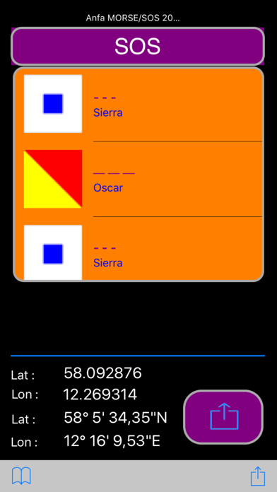 If you get lost out there in the dark you can send morse signals with the Iphone flashlight/torch. You send your current position ( longitude and latitude) to friends or rescue team. The position s sent in WGS84 dec and WGS84 grades/minutes/seconds