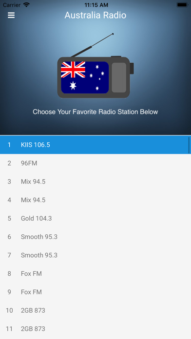 Listen to Australia FM Radio Player online for free, live at anytime, anywhere! This radio live app covers almost all the popular radio stations where you can simply stream directly without any mess on navigating here and there to find your favorite local radio stations! With this Australian radio player, you can enjoy: - Play in background, while enjoy doing other stuffs! - Favorite your AU radio stations for faster and better access next time! - Simple, and uses only little spaces on your iPhone, faster download, easy storage! - Covers almost all the popular AU radio stations! - Direct streaming source which results in fastest streaming speed with lowest buffering time! - Absolutely Free! Download Australian FM radio app now and try it out! You can enjoy listening to all great local music immediately!! List of Australia Radio Stations FM: - KIIS 106.5 - 96FM - Mix 94.5 - Gold 104.3 - Smooth 95.3 - Fox FM - 2GB 873 - 97.3 FM - Smooth 91.5 - Hit 107 - Triple M Melbourne - RSN Racing & Sport - Nova 100 - Hit 105 - Curtin FM 100.1 - 3AW - 4KQ 693AM - Triple M Brisbane - Nova 93.7 - KIIS 101.1 - ABC Grandstand - 2CH 1170 - 774 ABC Melbourne - 702 ABC Sydney - Nova 106.9 - Hit 92.9 - Nova 96.9 - 2Day FM - Triple M Adelaide - Rete Italia 1539AM - 6PR - Mix 102.3 - Talking Lifestyle 1278 - 4BC - Buddha Radio - Tab Racing Radio - 612 ABC Brisbane - Radio Austral - 720 ABC Perth - 2SM - Fresh 92.7 - Cruise 1323 - Gold FM - The Edge 96.ONE - Radio 2ME - WOW FM 100.7 - River 949 - 1029 Hot Tomato - scanACT - IVR Islamic Voice Radio - 891 ABC Adelaide - 2NURFM - Hit 106.9 Newcastle - 1053 2CA - 2YYY Radio - 101FM Radio Logan - ABC Classic FM - ABC - Triple J - 96three FM - Golden Days Radio - Voice of Islam - Pure Gold 80s - 103.9 Radio Triple T - Territory FM - Talking Lifestyle 882 - Nova 91.9 - Kiss FM - 7HO FM 101.7 - FIVEaa - Hit 104.7 Canberra - Radio Five-O-Plus - Muslim Community Radio - Bay FM - 3BAY - Hit 96.9 Goulburn Valley - Funky Kids Radio - The Breeze - 2BACR 100.9 FM - 2NN Oldies FM - Radio Eastern FM - Rebel FM - 95.5 K-Rock - Mix 106.3 FM - Brisvaani Radio - Radio 4KZ - RTRFM 92.1 - 2CCR - Radio Metro - Radio Doriforos - 2SM 1269AM Sydney - 2XL - Hit 97.9 Kalgoorlie - Hit 101.3 Sea FM - Softnezee - Gay Hits & Camp Tunes - Radio Ena - 96Five 96.5 FM Family Radio - Triple R - Radio Homolulu - 104.9 Sunshine FM - Big Country Radio - 4ZZZ - ZZZ FM - 2 You FM - Hit 103.1 Townsville - ABC - Radio National - 3WAY-FM - Northside Radio 99.3 - Three D Radio - 2MM Radio - ABC NewsRadio - Power FM South Australia - Elvis247 Radio - Vision Australia Radio - PBS-FM - Yarra Valley FM - FBi Radio - Velvet Deluxe - Vox FM 106.9 - Orange FM107.5 - 3XY Radio Hellas - Switch 1197 - Coral Coast Radio 94.7FM - 5MBS Adelaide (128) - 5MBS Adelaide (64) - Radio 531 3GG - Stereo 974 - 3WRB - Hit 100.9 Hobart - 3MBS (128) - 3MBS (64) - 2CC - Fresh 103.2 - 2CBA (fresh) - Inspire 103.2 - 2CBA (inspire) - Hope 103.2 - 2CBA (hope) - Coast FM - Oz Urban Radio (low) - Oz Urban Radio - Mareeba Police - Sanjhi Awaaz Radio - 97.3 Coast FM - 98 Five Sonshine FM - New Contemporary Music - Qaumi Awaaz Radio - Bay FM - Al Quran Al Kareem Radio - Melbourne Classical Radio - Middle East Radio Melbourne - Harman Radio CH1 - 98.1 Power FM - PBA-FM - Heart 107.3 - 7XXX - Radio Haanji - SWR FM 99.9 - 6EBA - UKWA Radio - Radio Indie International Network - Power FM Ballarat - 4MBS Classic FM - TAB Live Radio - Radio 2SER (128) - Radio 2SER (64) - Radio 2SER - 2NBC 90.1 FM - Darwin FM - KIK FM - Hot 91.1 FM - 4MCY - The Range Country - 105.7 ABC Darwin - 94.1FM Gold Coast Radio - Radio 2ooo - NSW, Australia Government Radio Network - Plenty Valley FM 88.6 - ABC Jazz - HIT Radio - 979fm Melton Community Radio - Vision Christian Radio - Light FM - 102.3 4TO FM - Koori Radio - SA Rock Radio - World Buddhist Radio - JOY 94.9 - 3JOY - DCFM 88.9 Radio - 2BOB Radio - Magic FM