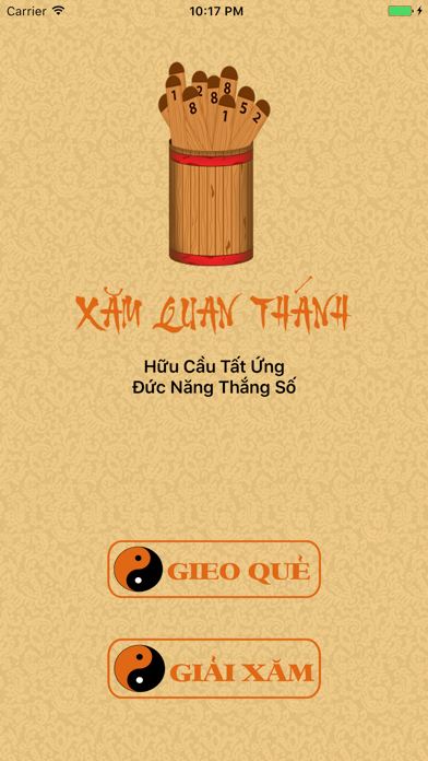 Hữu Cầu Tất Ứng Đức Năng Thắng Số Xin xăm đã trở thành một phong tục tập quán từ bao đời nay, đặc biệt là những ngày đầu năm, Tết đến. Mỗi quẻ xăm xin được là một Thánh ý hết sức vi diệu dành cho bạn, giúp bạn hiểu được phần số của mình để hành xử cho đúng đắn, hợp với ý trời, thì mọi việc sẽ trở nên tốt đẹp. Có câu: "Nhân hữu thiện nguyện, Thiên địa tùng chi". Nên dù cho bạn đặng quẻ xăm như thế nào đi nữa, hãy gắng sống tốt rồi trời đất cũng hộ trì cho. Ứng dụng Xăm Quan Thánh gọn nhẹ với các chức năng: - Xin Xăm - Tra cứu xăm Có thể sử dụng khi không có kết nối mạng. Thích hợp dùng để xin xăm hàng ngày. Mọi thông tin liên hệ, góp ý xin gửi về địa chỉ email [email protected]. Mong ứng dụng mang lại nhiều niềm vui cho các bạn. Chúc các bạn gặp nhiều điều may mắn trong cuộc sống!