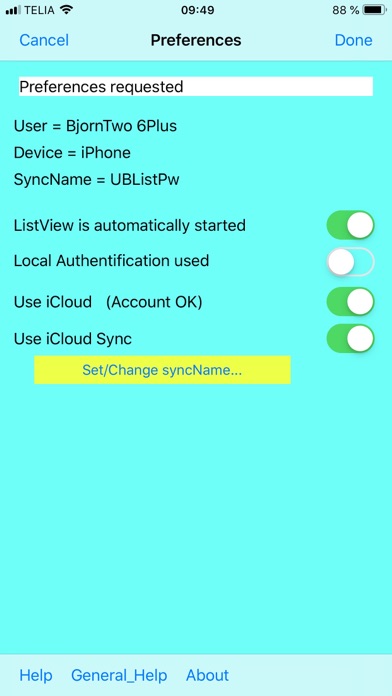 - scrambled data and separate global password - use iCloud for backup and sync with other iPhones as well as with Mac (separate macApp) - use Shared DB to sync between different iClouds - use Touch ID / Face ID for login when reactivating app - export/import possibilities - automatic inactivation on timeout - sort and search capabilities