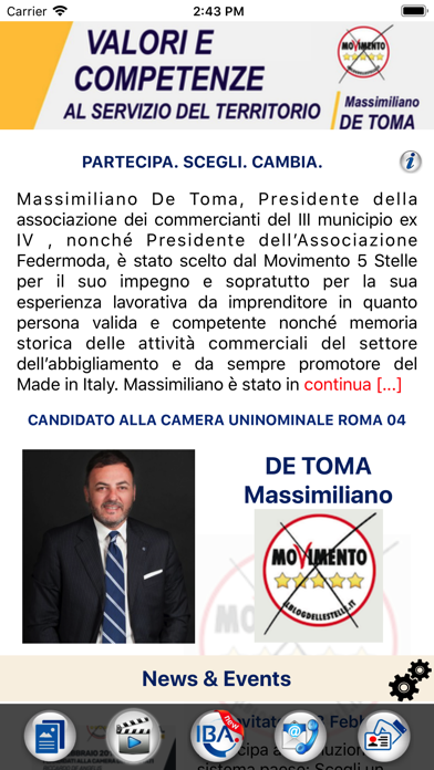 Massimiliano De Toma, Presidente della associazione dei commercianti del III municipio ex IV , nonché Presidente dell’Associazione Federmoda, è stato scelto dal Movimento 5 Stelle per il suo impegno e sopratutto per la sua esperienza lavorativa da imprenditore in quanto persona valida e competente nonché memoria storica delle attività commerciali del settore dell’abbigliamento e da sempre promotore del Made in Italy.