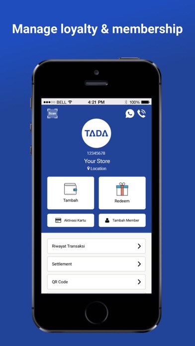 TADA Partner is a TADA merchant & corporate app that can help merchants & corporate to retain and engage their customers by managing their loyalty and membership. With TADA Partner app, merchants & corporate will be able to: - Activate the membership / loyalty card - Check membership / loyalty card balance - Top up the card - Redeem the card - Settlement - History transaction - Print the receipt - Add Member ** Please note that you need to register in order to access TADA Partner. If you haven't registered yet as a TADA Partner and wish to join TADA Partner, you can contact our Reward Experts through email: [email protected] **