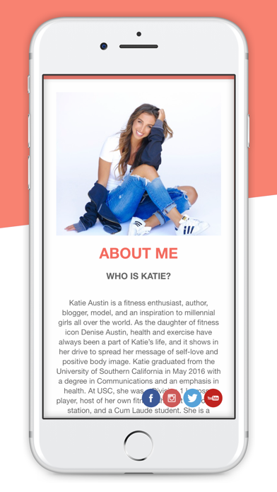 Katie Austin, daughter of fitness icon Denise Austin, has created a place for girls to easily access their workouts, get their favorite healthy recipes, and practical lifestyle tips to stay fit. Join the program with hundreds of other girls, as you can workout with Katie on demand in the privacy of your own home. Choose from a wide variety of workouts, from booty, abs, yoga, HIIT, and more - or follow the Daily Workout Calendar, as you get a workout to do every single day. BUY WORKOUTS TO OWN, OR SUBSCRIBE FOR FULL ACCESS: Subscribe for FULL access to over 70 in home workout videos, and always adding new ones! Anything from booty workouts, ab sculpting, yoga, HIIT, and tons more! Pay $9.99 a month with a 7 day free trial, auto-renewing monthly.* Pay $24.99 for three months with a 7 day free trial, auto-renewing every three months.* WITH YOUR SUBSCRIPTION, YOU WILL RECEIVE: - Access to ALL of my in-home workouts. (including all workout videos you see in my guides) - Full access to the katieaustin.tv vid-app and katieaustin.tv - All workouts including Katie’s Daily Workout Calendar + Yoga/Stretching - Downloadable healthy and delicious recipes - A range of workout lengths to suit any time and schedule - Beautiful, SD and HD streaming videos - Automatically beam videos from your phone to your Chromecast or AirPlay enabled devices - No Internet required! Download videos to watch offline, or connect with WiFi, 3G and 4G - For existing subscribers, you can simply sign in to your account to get access. No need to resubscribe. * All payments will be paid through your iTunes Account and may be managed under Account Settings after the initial payment. Subscription payments will automatically renew unless deactivated at least 24-hours before the end of the current cycle. Your account will be charged for renewal at least 24-hours prior to the end of the current cycle. Any unused portion of your free trial will be forfeited upon payment. Cancellations are incurred by disabling auto-renewal. This video app / vid-app is proudly powered by VidApp. If you need help with it, please head to: https://vidapp.com/app-vid-app-user-support/ Terms of Service: http://vidapp.com/terms-and-conditions Privacy Policy: http://vidapp.com/privacy-policy Vidapp - Connect, Motivate and Inspire
