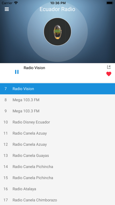 Listen to Ecuador FM Radio Player online for free, live at anytime, anywhere! This radio live app covers almost all the popular EC radio stations where you can simply stream directly without any mess on navigating here and there to find your favorite local radio stations! With this Spanish radio player, you can enjoy: - Play in background, while enjoy doing other stuffs! - Favorite your ECU radio stations for faster and better access next time! - Simple, and uses only little spaces on your iPhone, faster download, easy storage! - Covers almost all the popular ECU radio stations! - Direct streaming source which results in fastest streaming speed with lowest buffering time! - Absolutely Free! Download EC Spanish FM radio app now and try it out! You can enjoy listening to all great local music immediately!! List of Ecuador Radio Stations FM: - Radio María Ecuador - Radio Disney Ecuador (Guayaquil) - Radio Canela Imbaura - La Voz del Tomebamba - Mega 103.3 FM - Radio Disney Ecuador - Radio Canela Azuay - Radio Canela Guayas - Radio Canela Pichincha - Radio Atalaya - Radio Canela Chimborazo - Exa FM Ecuador - Radio Canela El Oro - Radio La Otra FM - Fútbol FM - La Radio Redonda FM - Radio Sonorama - Radio La Red - Radio Majestad 89.7 FM - Radio El Rocio - Radio Canela Tungurahua - Radio Amor 89.3 - Ecuadoradio - Radio Quito (?) - Radio Canela Manabí - Radio Zaracay - Onda Azuayas - Radio Sucesos - Radio Splendid - Radio Democracia EXA - Radio Morena - Distrito FM 102.9 - Radio Panorama 1440 AM - Radio Latina - Cosmos 97.3 - Cosmos 97.3 (2) - Cosmos 97.3 (3) - Radio Farra - La Voz de Aiiech - Diblu FM 88.9 - Radio La Voz de su Amigo - Radio Zapotillo 96.1 - JC Radio la Bruja - Mundo Anime - LaBachatera.Com - Radio Sentimientos 96.5 - Radio Onda Positiva 94.1 - Radio Centro AM/FM - Latin Rock - Radio Romance 90.1 FM - La Otra FM - Los 40 Principales Ecuador - Radio Católica Cuenca - La Suprema Estacion - Radio Colosal - Radio Stereo Buenas Nuevas - OYE FM - Radio Los Lagos 102.7 - Radio Huancavilca - Radio Continental 1320 AM - Super FM - Radio Rumba - Radio Rumba (2) - Radio Rumba (3) - Coca-Cola FM Ecuador - Stereo Latacunga FM - Radio Sucre - CRE - WQ Radio - WQ Radio (2) - WQ Radio (3) - HCJB - HCJB2 - Radio Magica 87.7 - La Unica Chichera - Radio Fiesta Machala - Radio Fiesta Machala (HD) - Radio Fiesta Machala (2) - Sol 96.5 - En Ecuador Hay Musica - Radio La Vida - Voces en Inglés - Sonido 102.1 - Maxima Caracol Radio - Bendicion Stereo - Radio Estrella 92.1 - Radio La Morlaquita NY - Radio Líder Ambato - Radio Platinum - Radio Boquerón 93.7 - Ondas de Esperanza 941 - Radio Majestad - Radio Vision - Rdaio Explosion Hits FM - Radio Canar Stereo - Super K800 - Swing Latino Ec - Radio La Vida - Musica Classica - Multimpactos Radio Digital - Boom Radio Ec - Radio La Vida - Voces de Catalunya - Radio La Vida - Voces de Francia - Javier Guaicha - Radio La Vida - Launge/Relax - Radio La Vida - MG RADIO HOLA 98.9 FM - Radio EcuaMusic.Net - Radio Caravana - La Radio De Moda - La Radio De Moda (2) - La Radio De Moda (3) - Radio La Vida - Voces de Italia - Radio Semillas de Amor - Radio COCOA - La Prensa Sport - Radio Punto Rojo - Radio Ecos de Naranjito - Toka Radio - La Farra Estacion - FLACSO Radio - Radio i99 - Vega Radio EC - America Estereo Radio - Radio Hechos - Radio La Vida - Por Amor al Arte - Radio Jesus Fuente de Vida - Zona Mega - Radio Amiga 90.1 F.M. - Las Almas Negras Radio - Sonorama FM - VirtualDJ Radio - ClubZone - Radio Jungla de la Amazonia - Radio Aler - Radioequinoccio.com - Radio Ultimito Mix - Radio Ecuamix FM - Radio Sin Fronteras - Radio Satelital 95.1 FM - La Rayuela Radio - Radio Juvenil Criss - Wilar Radio - Troya Productions - HCJB - La Voz de los Andes