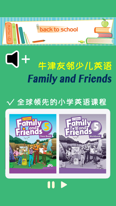 牛津友邻少儿英语Family and Friends,全球领先的小学英语课程,为学生学英语量身定制! Family and Friends—清晰的架构,快节奏的语言课程、歌曲和故事,以及综合评测包,这让它成为世界上最受老师喜爱和年轻学习者欢迎的课程之一。 *** 友邻少儿英语第二版盖了全部《英语课程标准(2011年版)》所要求的中小学词汇及语法。 7个级别的课程让学生轻松学会英语课标要求的1600个核心词汇/词组和65项语法和句型,更可在阅读中接触额外的1000多个词汇! 学生在丰富的语言输入下,能够更好地应用英语,摆脱“哑巴英语”问题。 *** 友邻少儿英语的学习方法与容量,可以让学生在小学阶段就达到英语课标五级的要求,即初中三年级的水平,为学生迈向国际教育打好基础。 突出优势 (1) 7个级别的少儿英语课程,可与友邻幼儿英语课程配套使用,合成10年制英语课程 (Starter -Level 6)。 (2) 高效的语法学习进度。 (3) 技能训练课程极富挑战性。 (4) 专项英语备考内容。 (5) 科学的自然拼读教学。 (6) 丰富的教学资源,适应各类教学环境和教学风格。 Family and Friends是一套七级的少儿英语课程,结合了独到的自然发音拼读教学、强大的语言技能训练和快速推进高效的综合的教学大纲,并将课程精神延伸到课堂外,推广家庭与友谊的价值观。 为确保学生能建立以英语流利沟通的自信与能力,本课程为教师、学生和家长们定制了丰富的配套资源。 课程特色 1.通过歌唱鼓励孩子克服最初的胆怯和羞涩,并练习新学的语言。 2.独特的语音拼读学习大纲,尤其适合不使用罗马字母的孩子。 3.所有活动围绕单元主题展开,将听、说、读、写训练融合一体。 4.生动清晰的语法/词汇呈现方式、听 — 听读 — 表演的学习方式等。 5.每三个单元之后开放一个会话时间,让孩子在学习英语之初就有机会充分练习口语,学会对话。 6.文化部分作为一个拓展内容给孩子们提供更多机会了解多元文化,比较文化间的异同。 该系列共分7级 每级别主课本包括1 个入门单元、15 个单元(5、6级12个单元)、课本内容; 每级别练习册包括1 个入门单元、15 个单元(5、6级12个单元)、同步练习。 此应用配套第5级教程内容。 每个单元的内容特点: ■Words 词汇 -清晰生动的词汇呈现 -大量词汇听说练习 -动画激活孩子不同类型的学习感官 -词汇和语法学习融合于故事 ■Grammar 语法 -清晰的语法呈现 -学生通过“听一听、读一读”等适合少儿的活动练习语法,并通过表演的形式演绎故事 -学生课本和练习使用相同页码,便于分册的互换使用 ■Songs 歌曲 -通过歌唱鼓励孩子克服最初的胆怯和羞涩,并练习新学的语言 -适当补充单词,拓展核心词汇 -通过生动的方式复习巩固已经学会的语法知识 ■Phonics 自然拼读 -独特的自然拼读学习大纲通过教授单词发音、构词的字母、以及包含这个词的短语或句子来帮助孩子学会听认和拼读英语,尤其适合不使用罗马字母的儿童们 ■SkillsTime 技能时间 -语言技能课程着重提供听、说、读、写强化训练,所有活动围绕单元主题展开,将听、说、读、写训练融合一体 -技能课程内容更丰富有趣,使孩子能有更大的参与度 -教学评测包提供多种不同的写作文件包,方便老师将孩子的作文备案 -课本引导一目了然,帮助孩子迅速定位练习册上的拓展写作任务 ■FluencyTime 流畅会话时间 -每三个单元之后开放一个“流畅会话时间”,将实用的日常用语慢慢地渗透给孩子们,让孩子在学习英语之初就有机会充分练习口语,学会对话 -引入核心短语并加以练习 -新颖的动手作业和手工活动适合动觉型学习者 -学生可以利用制作完成的手工来实景进行“EverydayEnglish”练习 ■Culture 文化 -文化部分作为一个拓展内容给孩子们提供更多机会了解多元文化,培养孩子们多方位地比较自己和同龄英语国家孩子的生活,寻找异同 -选取孩子们熟知的话题,让他们能够联系生活,有内容可分享 -适当拓展、提高语法难度,让孩子们挑战自我,更有下一级别的语法内容提前预告 -挖掘文化宝藏,练习册的文化部分将会告诉孩子们更多 第5级主课本目录 Do something different! 1 You can build it! 2 It's show time! 3 The best party ever! Fluency Time! 1 Extensive reading 4 Our planet 5 Reuse and recycle 6 Crazy about wildlife! Fluency Time! 2 7 Call and ambulance! 8 Let's eat healthily 9 This big match Fluency Time! 3 10 Ancient buildings 11 A message for the future 12 Be a part of history! Fluency Time! 4 Culture Class play 第5级练习册目录 Do something different! 1 You can build it! 2 It's show time! 3 The best party ever! Fluency Time! 1 Extensive reading 4 Our planet 5 Reuse and recycle 6 Crazy about wildlife! Fluency Time! 2 7 Call and ambulance! 8 Let's eat healthily 9 This big match Fluency Time! 3 10 Ancient buildings 11 A message for the future 12 Be a part of history! Fluency Time! 4 Fluency Time!Review Culture Class play Grammar Time Everday English phrase bank Dictionary Irregular verb list