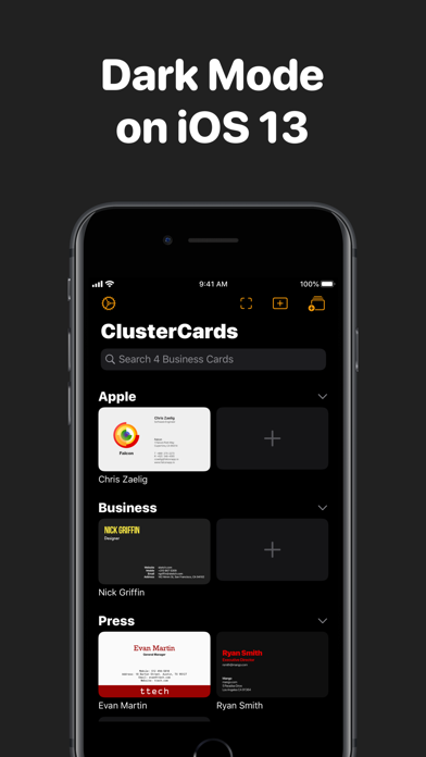 ClusterCards is an easy to use business card scanner. Just snap a picture of any business card and ClusterCards lets you skip the typing by automatically finding and transcribing all the key information, such as emails and phone numbers. - QuickScan*: Quickly scan multiple business cards at once - Advanced Card Scanner: Automatically detects cards, cropping and enhancing them before pulling out key data such as phone numbers and emails found on the card - Quick Actions: Quickly share or contact people with quick actions (for example, a call action next to a phone number) - Siri Shortcuts: Scan, manage, and edit your business cards in the Shortcuts app or using Siri - Card Groups*: Organise your business cards into custom groups - Auto Contacts Sync*: Automatically add each scanned card to your contacts - Scan your card: Scan your business card to send it to people you meet - Zoom and enhance cards: If you missed a detail on a card or the lighting wasn't good, you can enhance and zoom cards - Instant Search: Search for cards or even information such as emails found within cards - Card Protection*: Lock ClusterCards with Touch ID or Face ID to prevent others using your phone from accessing your data - Export Cards*: Export your cards to the VCard/VCF format to import them into a CRM or transfer them - Dark Mode: ClusterCards completely supports dark mode on iOS 13 *ClusterCards is free and supports unlimited business cards. Some features require ClusterCards+, an optional subscription which unlocks additional features and supports the continued development of ClusterCards. ——— ClusterCards is completely made by Julian Schiavo. Have questions or feedback about ClusterCards? Get in touch by sending an email within the app or on ClusterCards' Twitter, @ClusterCardsApp. Enjoy using ClusterCards? I'd really appreciate if you left a quick rating or review—it really helps!