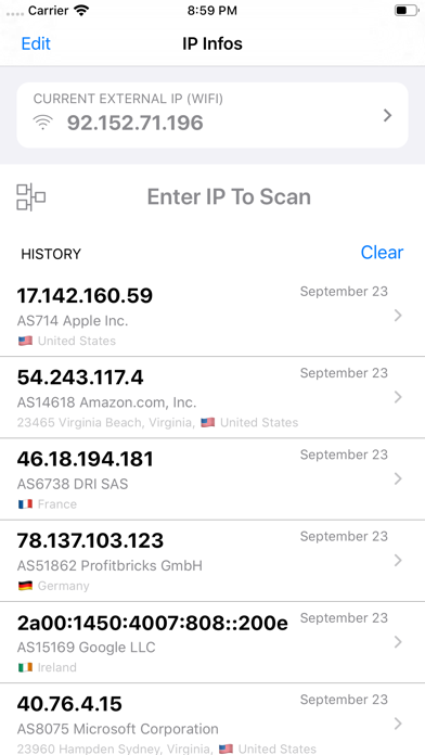 Automatically find IP Address from websites or domain name and get all infos on that IP including geographic location. Use the Today extension to view your current external IP and visible location (perfect to verify that your VPN is working). Get infos on any website servers directly from safari with the Action extension.