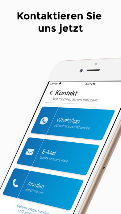 Ist eine augenärztliche Untersuchung wieder fällig? Oder haben Sie akute Augenleiden? Möchten Sie Ihre Brille loswerden und ein Leben ohne Brille genießen? Steht eine Grauer-Star Op an? Mit dieser App haben Sie alles im Blick und können sofort einen Termin zur Untersuchung vereinbaren. Diese App ermöglicht Ihnen eine freie Terminauswahl! Ihr Termin wird Ihnen dann direkt bestätigt. Außerdem können Sie sich über unsere Leistungen und sogar über verschiedene Augenerkrankungen informieren. Sie haben die Möglichkeit und per Knopfdruck zu erreichen oder eine WhatsApp-Nachricht zu schicken. Sie können uns auch mit dieser App per E-Mail erreichen. Egal wo sie sind, nur ein Klick und Sie können die Navigation und die Wegbeschreibung zu uns in Ihrem Handy aktivieren. Auch eine Google-Bewertung unserer Klinik wird mit diesem App möglich sein. Wir hoffen, dass wir Ihnen mit diesem Online-Buchungsverfahren einen guten Service geboten zu haben. Sie können Ihre Termine bequem und rund um die Uhr mit einem Klick vereinbaren.