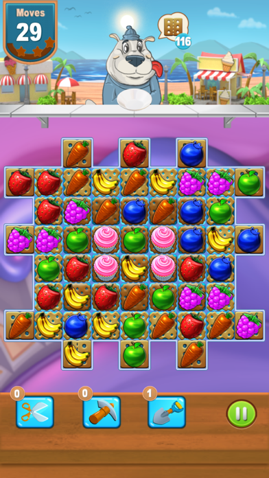 Come and play the best Match 3 game while helping out lovely animals by making delicious juice and defeating the angry tiger. Move the fruits around and enjoy the happy face of the animals in this puzzle adventure to progress to the next level. Keep playing and surprises are all over the places. There are 200 levels to play and more to come.