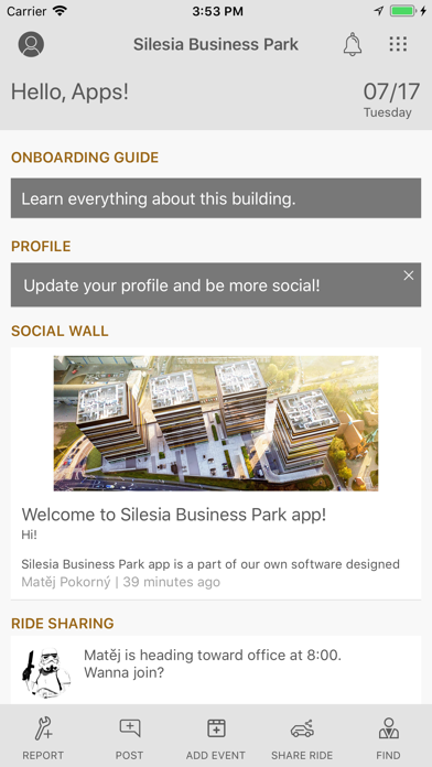 Silesia Business Park app is designed not only for employees at SBP in Katowice. You can find all the latest information on the board, communicate with your coworkers, share rides into your office, explore surrounding and much more.