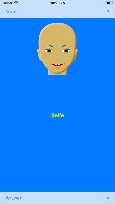 This is an entertaining educational game that helps in learning the German language. It is actually a funny game in which a word is selected randomly from the list of the most common German words. The user should find the word by guessing individual letters in the word. At the start of the game, there is a girl with full makeup. Each time the user guesses a letter wrongly, some makeup is removed from the girl's face revealing her original face gradually. The game is over when all the makeup is removed from the girl's face.
