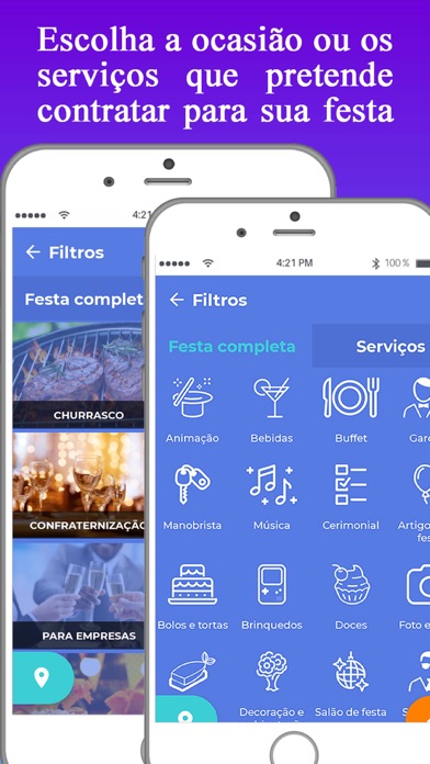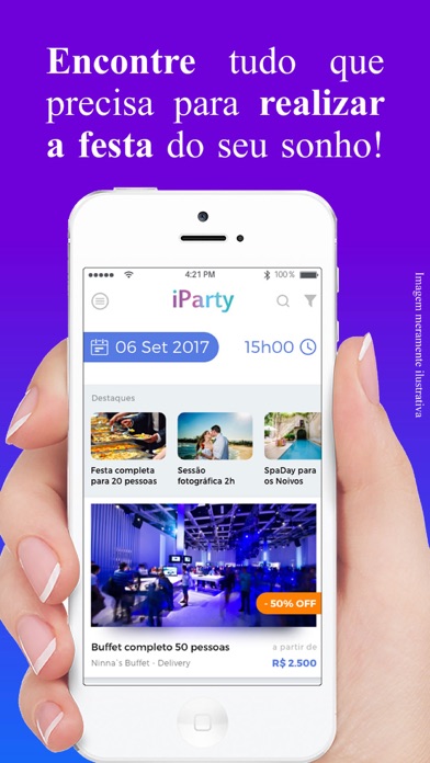 O melhor aplicativo de ofertas e descontos para você realizar a festa dos seus sonhos! O iParty é um aplicativo que busca por fornecedores de serviços para festas e foi criado para facilitar a vida dos donos e organizadores do evento. Ele traz um leque de empresas especializadas, experientes e mais bem avaliadas do mercado. Além de concentrar todos os serviços num único lugar, facilitando sua vida e reduzindo o tempo na busca por empresas de festas, o iParty te dá toda assistência na contratação, traz avaliações para facilitar a escolha e segurança para que você possa relaxar e curtir seja qual for a celebração. Temos certeza que você vai adorar a experiência, pois a ideia surgiu de nossa própria necessidade como pais de crianças e adolescentes que vivenciaram tantas fases de celebração e organização de festas. Por isso, nos dedicamos pessoalmente e com todo o carinho para que você encontre tudo que precisa com facilidade e viva esse momento de forma prazerosa, sem preocupações! Basta escolher a ocasião e selecionar os serviços que pretende contratar. Pode ser o pacote completo ou apenas o último detalhe que faltava para tornar o momento ainda mais especial. Nossas Funcionalidades: - Encontre as melhores ofertas próximas a você, por geolocalização. - Receba alertas direto no seu celular! - Filtros rápidos: escolha entre festa completa ou um serviço específico para encontrar facilmente a sua oferta. - Favorite suas Ofertas: salve suas ofertas preferidas para facilitar sua decisão! - Histórico de seus pedidos: acompanhe o status dos orçamentos solicitados. - Tá sem dinheiro para fazer a festa? Nós oferecemos empréstimo com juros menores e maior prazo de pagamento (*sujeito à aprovação). - Mais segurança: temos o seguro completo e personalizado de acordo com sua necessidade (*sujeito à aprovação). - Você pode enviar uma mensagem para nossa equipe de atendimento, caso precise de ajuda. Pacotes completos para todos os tipos de festa: - Ano Novo; - Bodas; - Casamento; - Churrasco; - Confraternização; - Dia dos Namorados; - Aniversário; - Para Empresas; - Festa Infantil; - Festa Junina; - Festa Oriental; - Formatura; - Halloween; - Natal. Todos os serviços para tornar sua festa ainda mais especial: - Animação; - Artigos para Festa; - Bebidas; - Bolos & Tortas; - Brinquedos; - Buffet; - Cerimonial; - Decoração & Ambientação; - Doces; - Foto & Vídeo; - Garçom; - Manobrista; - Música; - Salão de Festas; - Salgados; - Segurança. No iParty você vai encontrar tudo que precisa para realizar o seu sonho! É aqui que a magia começa! Vamos te ajudar a escolher as melhores ofertas para festas e tudo aquilo que sua imaginação permitir para tornar o seu sonho em realidade! Divirta-se!!!