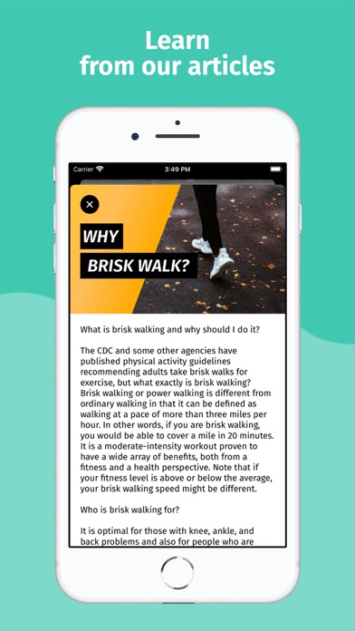 BriskWalk is an easy-to-use training app that helps you lose fat and become more energetic. Features: • Daily step goals • A custom tailored walking routine based on your fitness level and body measurements. Intensity increases with time to make sure you keep improving. • Weekly activity summary • Check out your past workouts on a map • Clean and simple interface to get you started as quickly as possible • Integrates with the Health app to get accurate step count and log workouts • Free app • No ads To learn more about the terms of use go to: https://www.pavelmiklos.com/briskwalk/terms-and-conditions.html