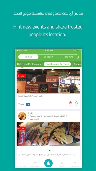 Tanbeeh: an amazing way to get interactive updates about things you like to catch, avoid or just to know about. Join now to discover others’ heads-ups and share yours! تنبيه: منصة تفاعلية للتنبيهات ومواقعها التي يطلقها مستخدمو التطبيق ويتيح لك التقييم لزيادة موثوقية التنبيه، كما يمكنك أيضا تحديد اهتماماتك ومتابعة مواضيع أو مستخدمين معينين وإضافتهم لقائمتك .. كل هذا .. وأكثر مع "تنبيه"